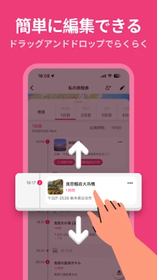 どのようにして最高の旅程を組み立てるのか、その答えはFunlidayにあります。複雑な地図とにらめっこしたり、膨大な情報を手作業で入力したりする必要はもうありません。Funlidayの画期的なドラッグ&ドロップ機能を使えば、行きたい場所をリストに追加するだけで、瞬時に最適なルートと移動時間を自動で計算。世界中の膨大な観光スポットデータがFunlidayのアプリに詰まっており、名前や住所をいちいち調べる手間も省けます。数回のタップとスワイプで、あなたの望む完璧な旅のシナリオが、あっという間に目の前に広がります。