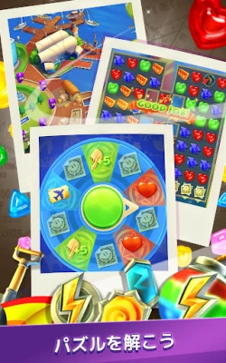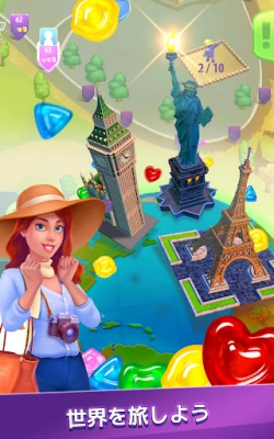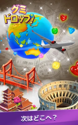 さあ、スーツケースに夢を詰め込み、グローバルな冒険へ出発しましょう!「グミドロップ」は、世界中の実在する100を超える都市を巡り、歴史的な建造物を再建する喜びを体験できる、心ときめくマッチ3パズルゲームです。ニューヨークの象徴的な自由の女神やパリのエッフェル塔はもちろん、東京の活気あふれる街並みやローマの荘厳な遺跡まで、数千に及ぶ有名なランドマークをあなたの手で蘇らせる壮大な旅が待っています。色とりどりのグミを入れ替えてマッチさせ、各地の地元住民と触れ合いながら、忘れられない思い出を紡ぎましょう。